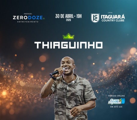 Dia 30 de Abril de 2026 tem 012 SAMBA FEST SHOW COM THIAGUINHO no Itaguará Country Clube em Guaratinguetá, SP!