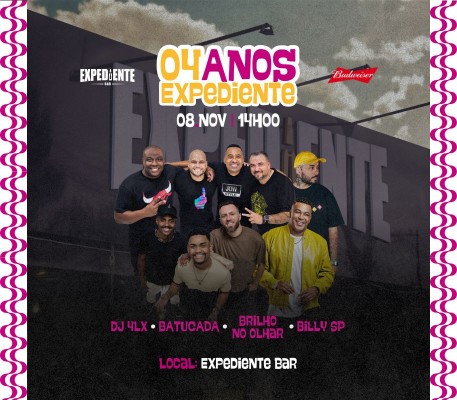 Dia 08 de Novembro tem 04 ANOS EXPEDIENTE BAR no Expediente Bar em São José dos Campos, SP!