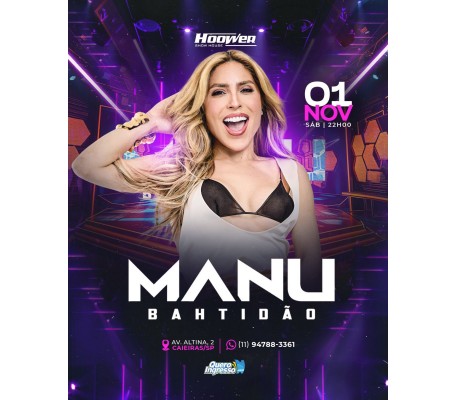 Dia 01 de Novembro tem MANU BAHTIDÃO na Hoower Show House em Caieiras, SP!